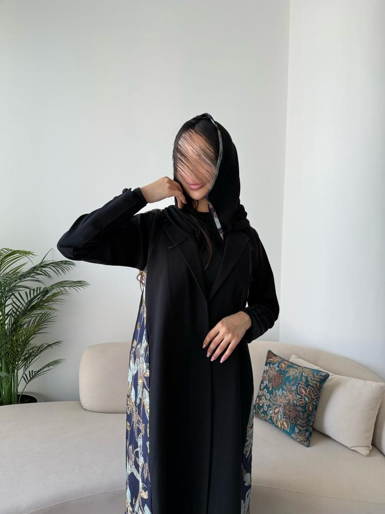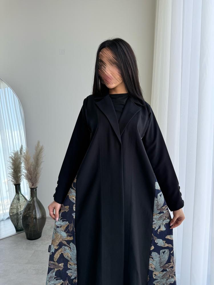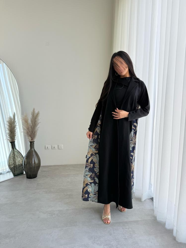 • مزيج أنيق من قماش الكريب الفاخر والجكار المشجر يمنح العباية لمسة مميزة.