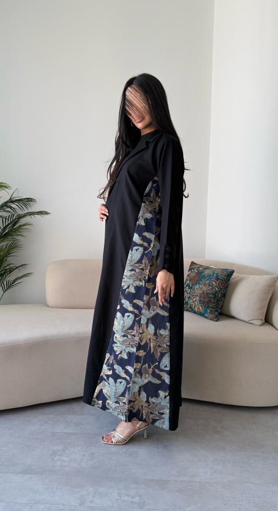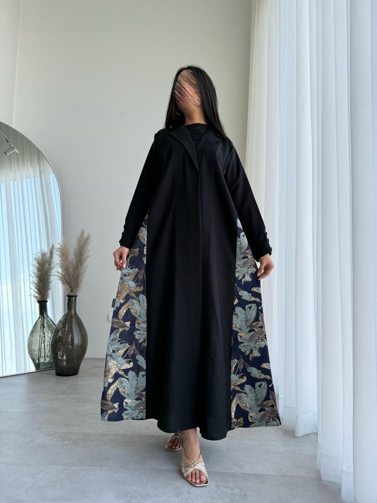 تألقي بإطلالة تجمع بين الفخامة والجاذبية مع مزيج الكريب الفاخر والجكار المشجر بألوان ذهبية وكحلية تمنحك حضورًا لافتًا في كل مناسبة.